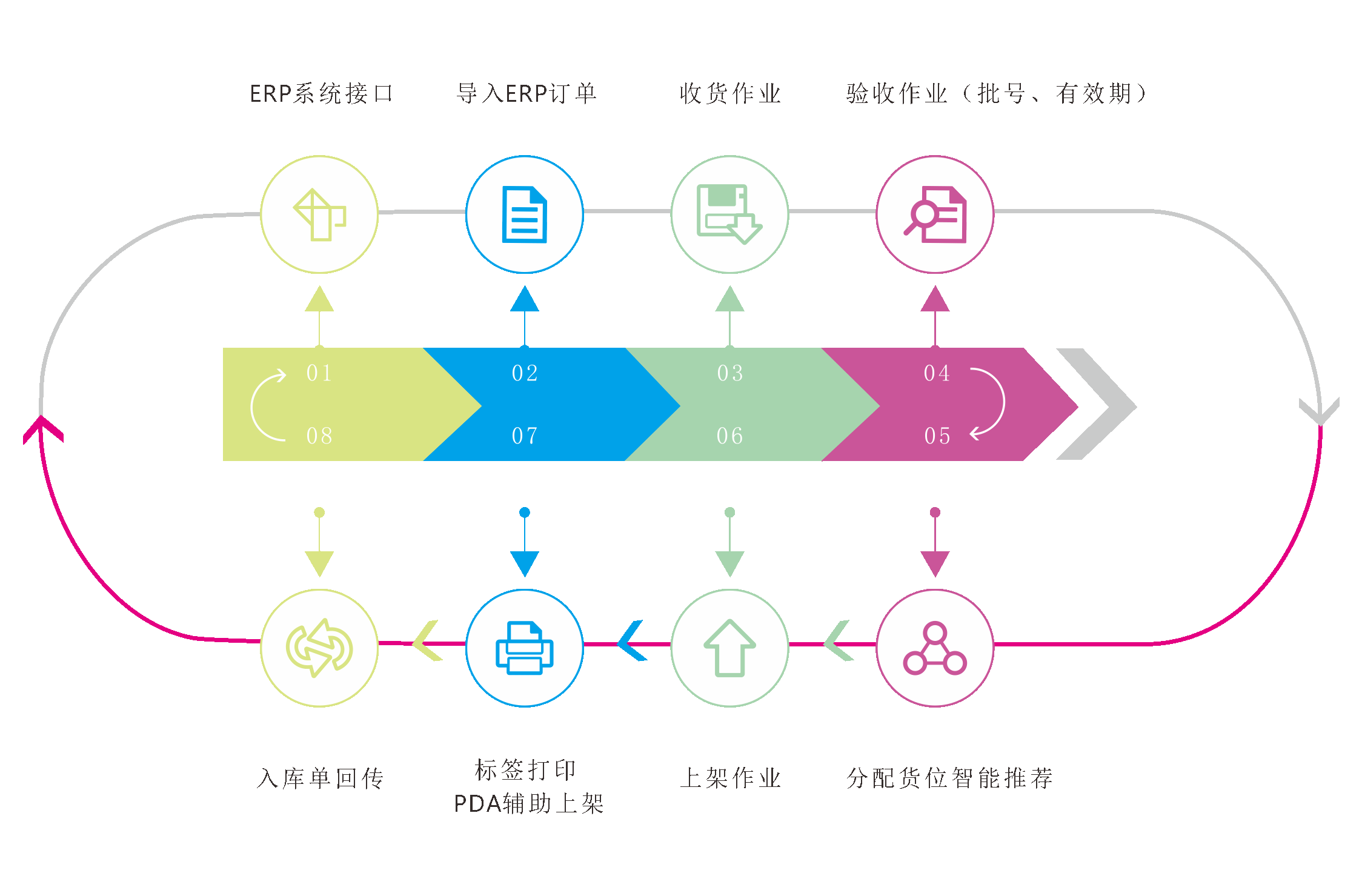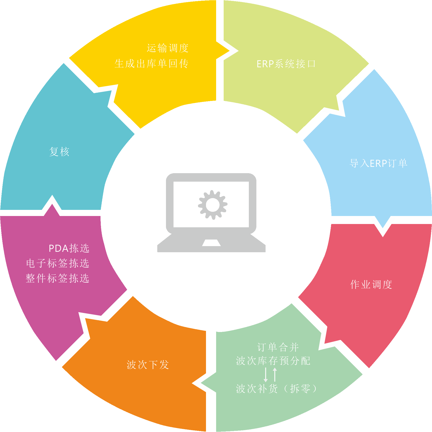 捡货、上架、移库、出库、复核、发货、运输综合流程管理